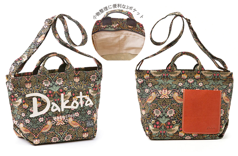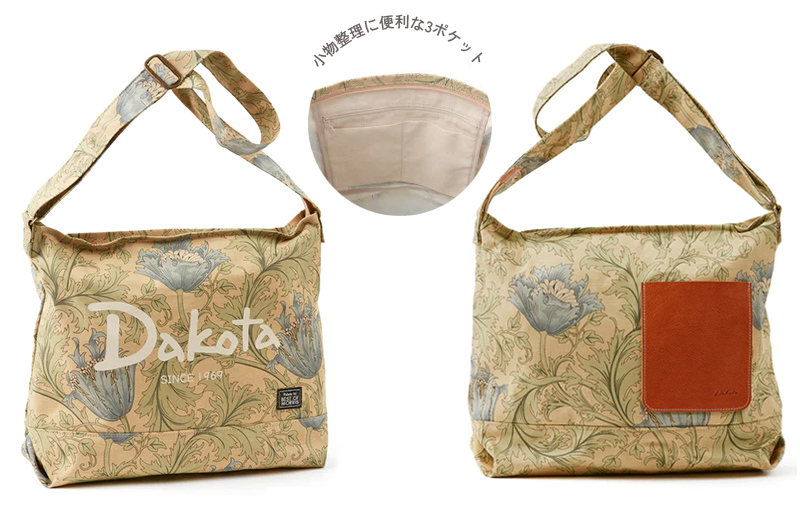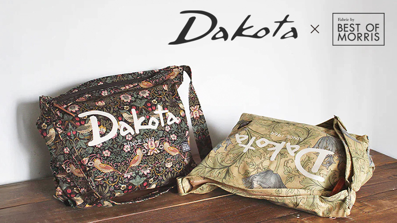 ノスタルジックなウィリアムモリスの柄にあわせ、Dakotaの80年代の旧ロゴ&デザインをミックスし、人気のレトロムードを演出しています。