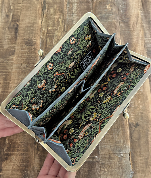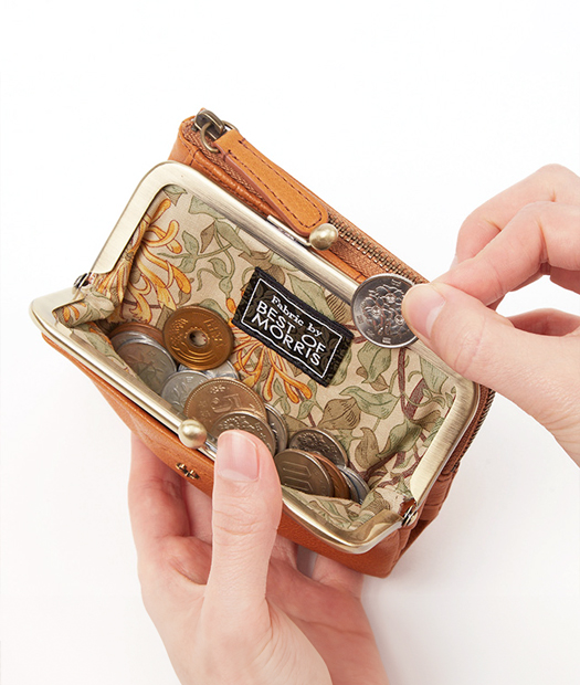 内側に、BEST OF MORRISの生地をあしらい、時代を越えて愛される芸術的な柄がお財布を開くたびに目を惹きます。